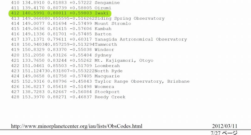 いわき天体観測所(天文台コード:412 IAU code)
