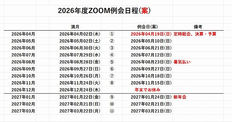 いわき天体観測所 ZOOM会議 2026年度